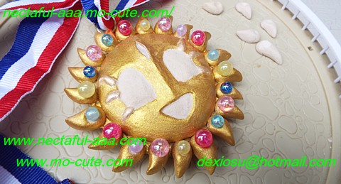 太陽のメダルの2個目です。1個目のメダルを作った時、樹脂粘土で簡易かたどりして、